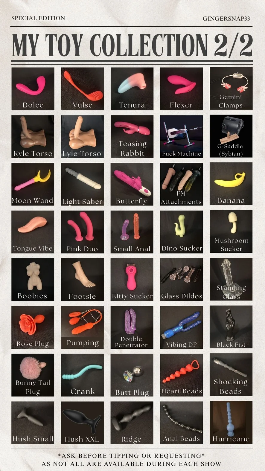 Pohľad pod sukňu, Twerk, Hore bez, Plieskanie po zadku, Exhibicionizmus, Prstovanie, Sprosté reči, Hračky na bradavky, Orgazmus, Orál, Hodnotenie vtáka, Foot fetiš, Dildo alebo vibrátor, Sexuálne hračky, Striptíz, Jazdenie, Odzadu, Medzi kozy, Zárez, Erotický tanec, Honenie, Podpätky, Pokyny na honenie, Dominy, Olejová šou, SPH, Nylon, Análne hračky, Sprcha, Cosplay, Hlboký orál, Sedenie na tvári, Roleplay, CEI, Paroháči, Dvojitá penetrácia